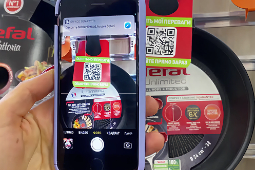 Створено детальну 3D-модель сковороди Tefal Unlimited з візуалізацією її особливостей. Реалізовано AR-активацію через кнопку на сайтах партнерів та іміджеву лендінг-сторінку. Для офлайн-магазинів підготовлено QR-код, що відкриває AR-досвід і додаткову інформацію про продукт. Проєкт розроблено на технології WebAR