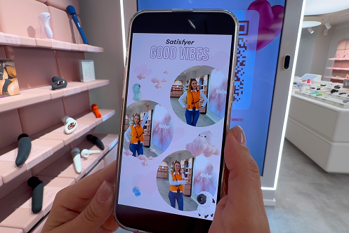 Создать интерактивное AR-зеркало для магазина Satisfyer, которое бы привлекало посетителей к взаимодействию с пространством, давало бы им возможность сделать брендированное фото и быстро получить его на свой смартфон в удобном формате
