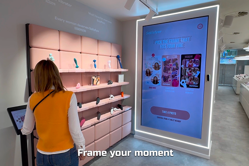 Для магазина Satisfyer наша команда разработала AR-зеркало как интерактивный digital-опыт для посетителей пространства. Мы полностью отвечали за создание решения — от конструктива и технической реализации до продумывания сценариев взаимодействия и дизайна визуальных рамок. Готовое оборудование было доставлено в Кельн, где находится магазин.